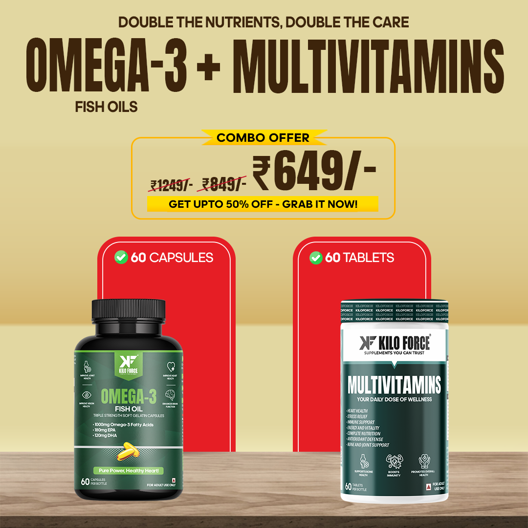 Keywords integrated for SEO:Â Omega-3, Multivitamin, Combo, Daily Wellness, Immunity, Heart Health, Brain Health, Fish Oil, Vitamins, Minerals, Joint Support, Energy, Antioxidant, Nutritional Support, Daily Supplement, Buy Online, Health Booster, Kiloforce.